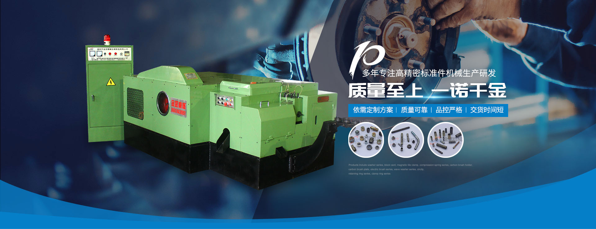 溫州市金諾機(jī)械設(shè)備制造有限公司創(chuàng)立于2003年,公司位于溫州市濱海經(jīng)濟(jì)技術(shù)開發(fā)區(qū)。是一家專業(yè)從事研發(fā)和生產(chǎn)高精密度緊固件設(shè)備以及多工位冷擠壓零件成型設(shè)備的專業(yè)制造商。主營產(chǎn)品有:冷鐓機(jī)、多工位冷鐓機(jī)。本公司秉承“質(zhì)量為上,一諾千金”,的企業(yè)宗旨,不斷創(chuàng)新,積聚多年冷鐓機(jī)研發(fā)制造經(jīng)驗(yàn)......